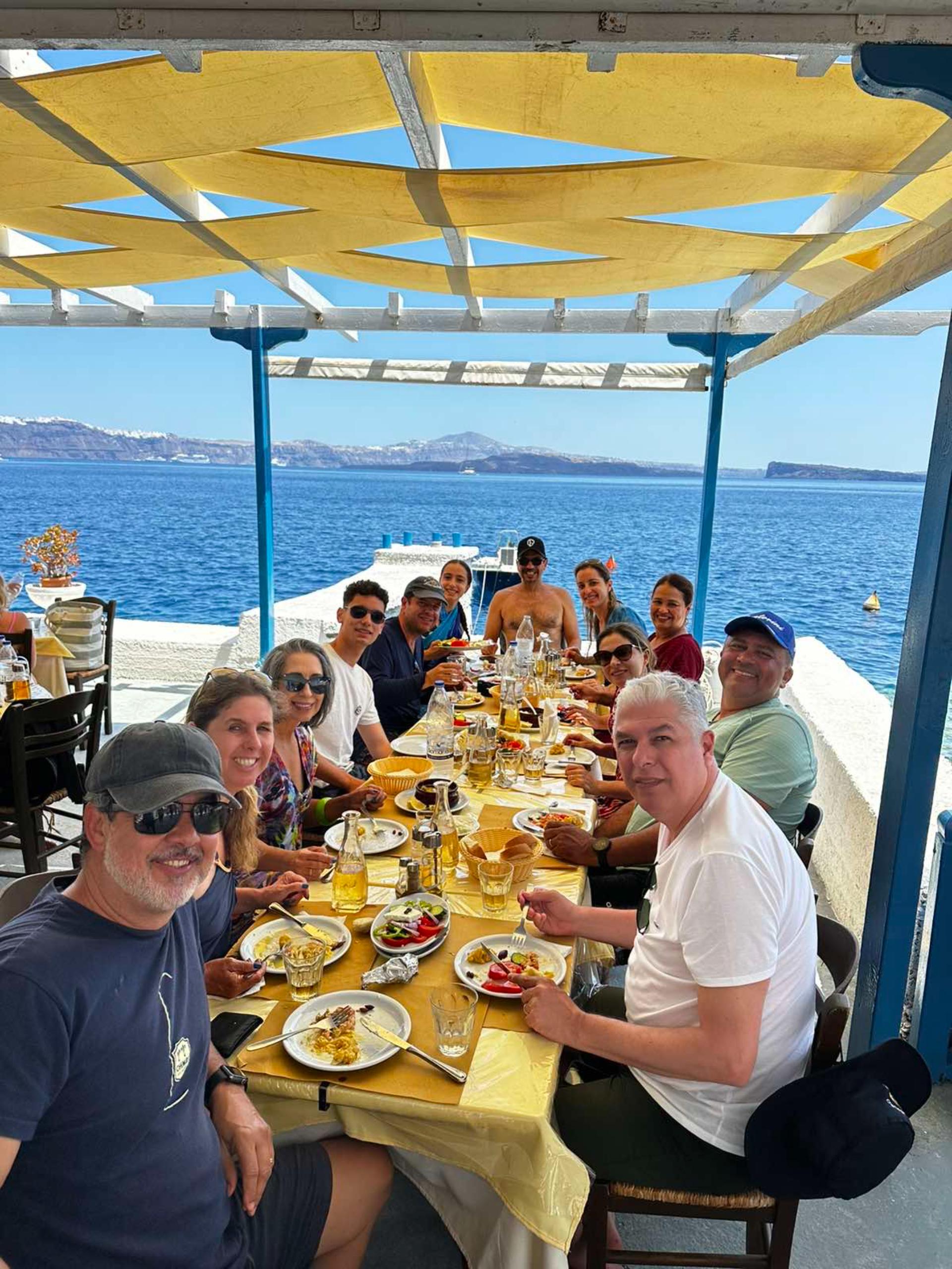 savor the breathtaking sunset against the backdrop of Santorini’s mesmerizing views.